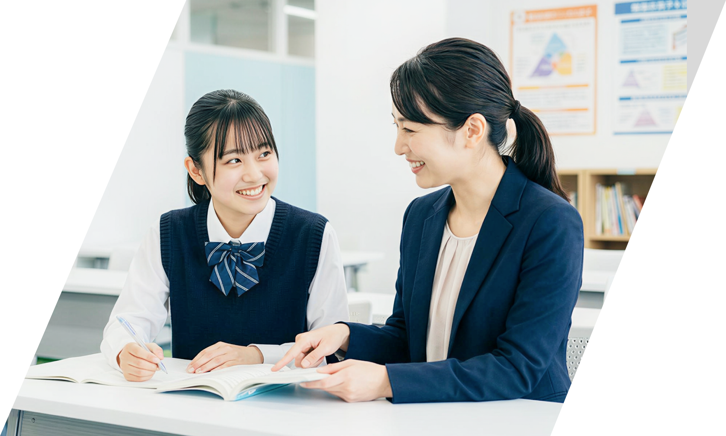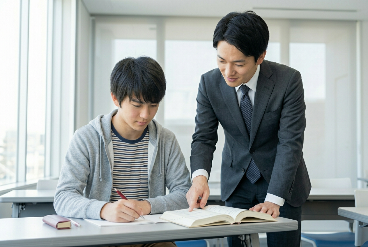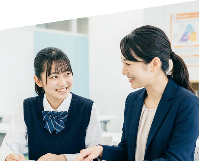 講師1人・生徒1人の完全個別指導。あなたの弱点に集中的にアプローチし、最短ルートで合格へ導きます。自分だけの学習空間で、自分だけの先生が、自分だけの指導時間を確保。周りの目を気にせず質問できるから、分からないまま先に進むことはありません。
