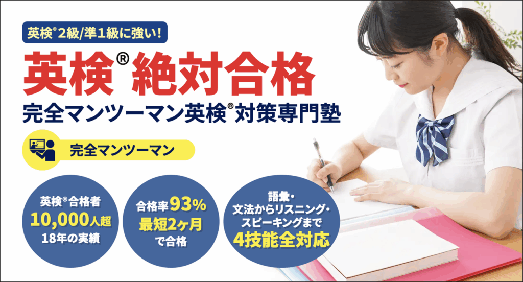 英検合格を目指す場合、英検専門塾のサポートを受けることをご検討ください。